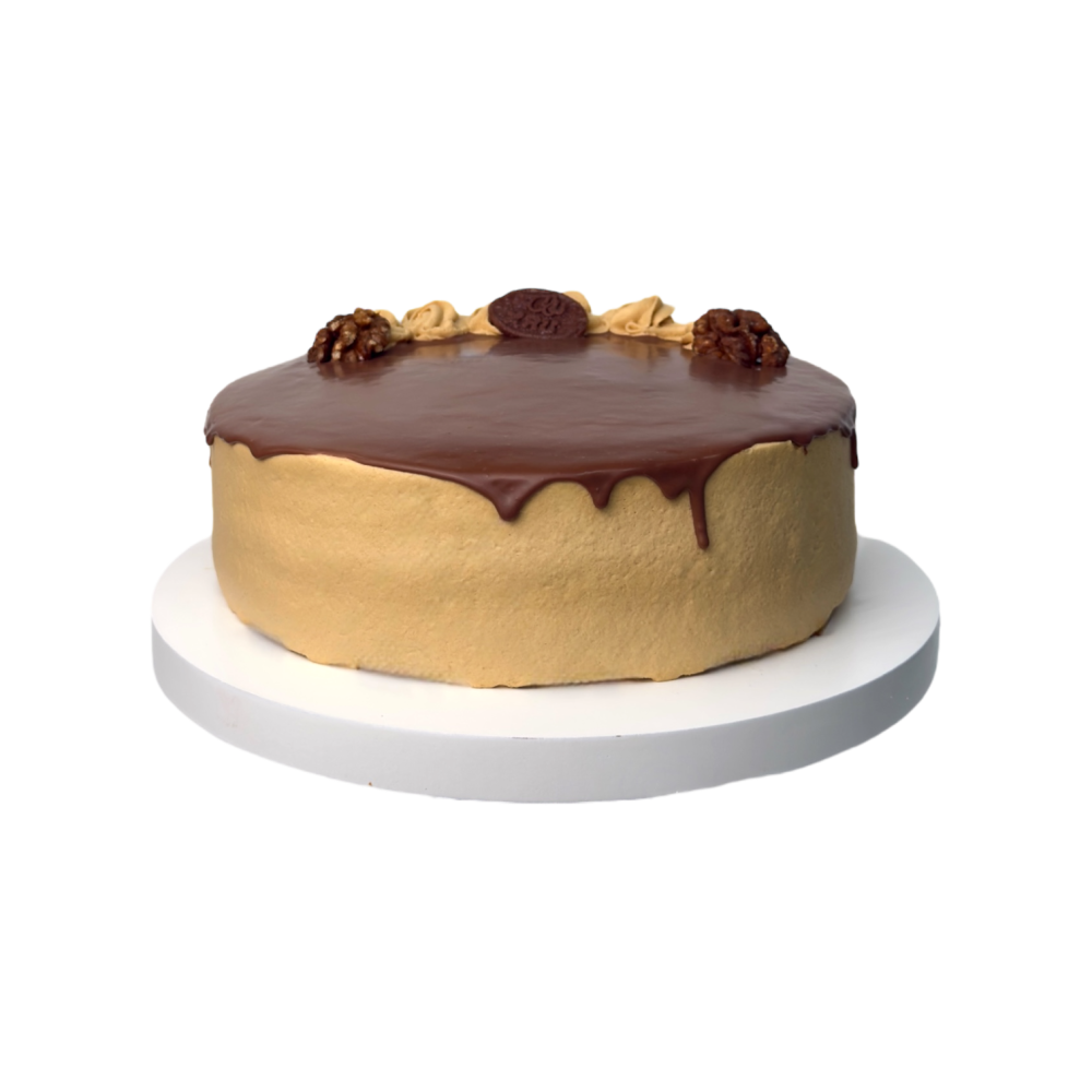 Медовый бисквит с карамельным кремом, шоколадным ганашем и грецкими орехами. Ароматный, насыщенный торт, приготовленный на основе пористого медового бисквита. В каждом слое — тонкий карамельный крем и шоколадный ганаш, а хрустящие грецкие орехи добавляют текстуру и насыщенность вкуса. Отличный выбор для ценителей карамели, медовых нот и орехового хруста.