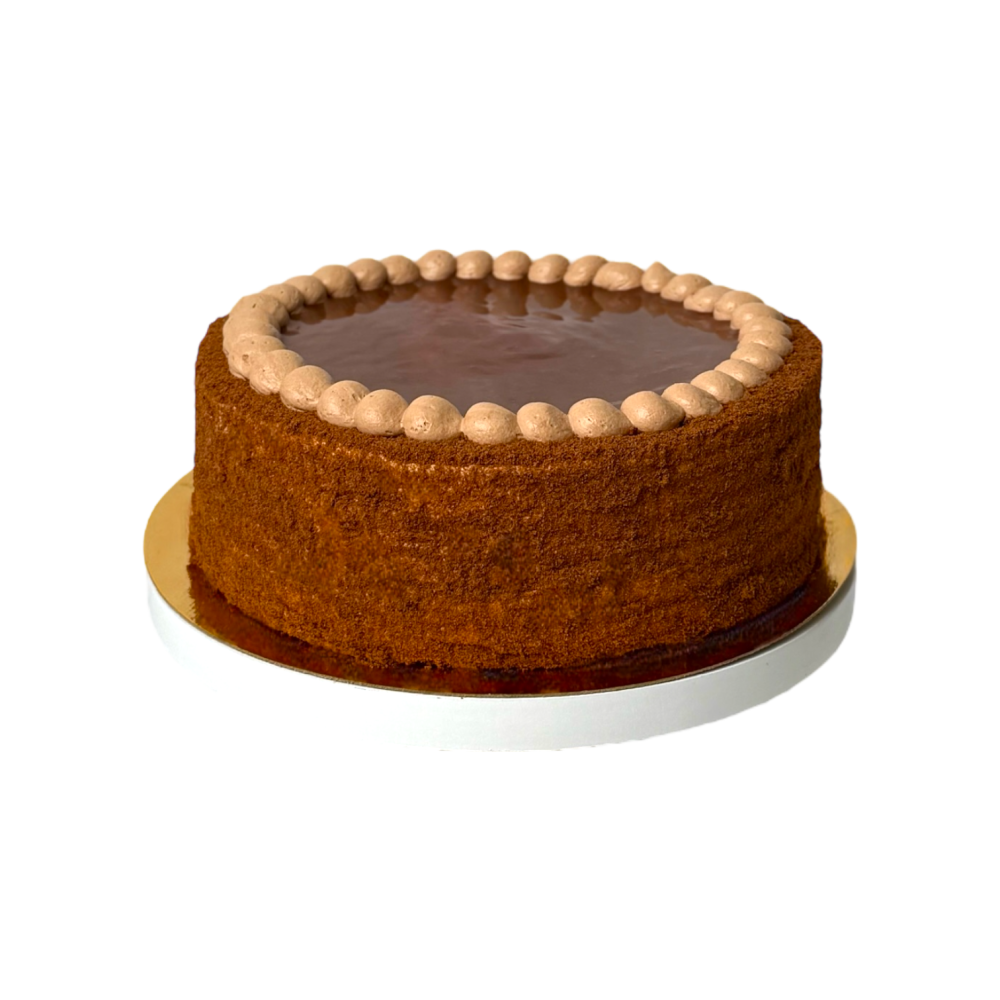 Уютный и насыщенный торт, в котором тонкие шоколадно-медовые коржи гармонично сочетаются с тающим во рту пломбирным кремом на сливках. Вкус нежный и сбалансированный, с мягкими нотками ванили, мёда и какао. Идеален для домашнего чаепития, праздника или просто для души.