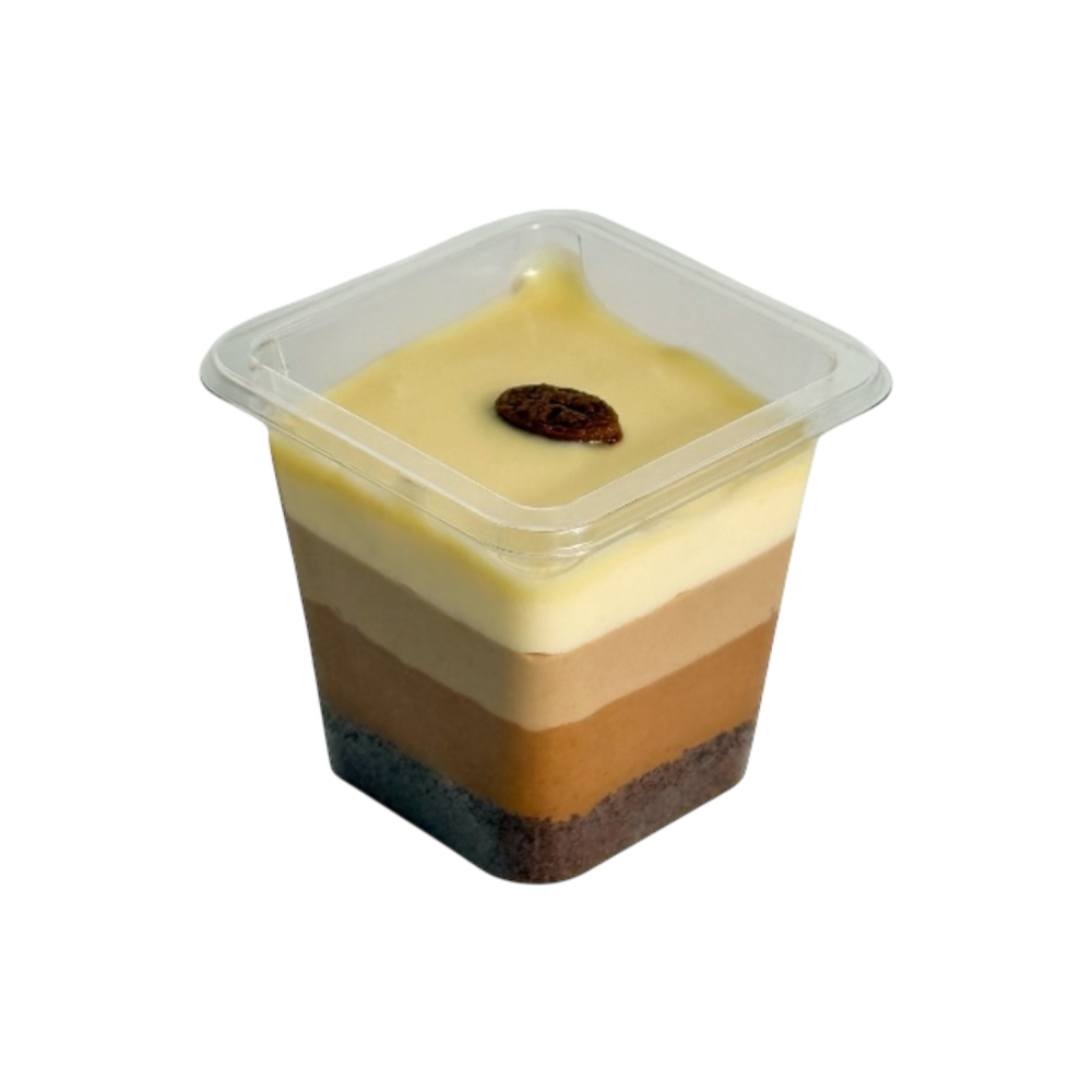 Элегантный и насыщенный десерт для настоящих любителей шоколада. Три слоя нежнейшего мусса — из тёмного, молочного и белого шоколада — создают идеальный баланс вкусов и текстур. Бархатная консистенция, изысканная подача и насыщенность делают этот десерт фаворитом на любом столе.